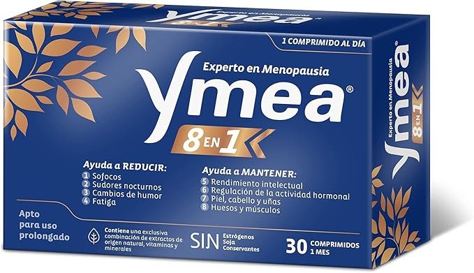Ymea: Reduce sofocos, sudores nocturnos, cambios de humor y fatiga, mientras favorece la salud de pelo uñas y piel