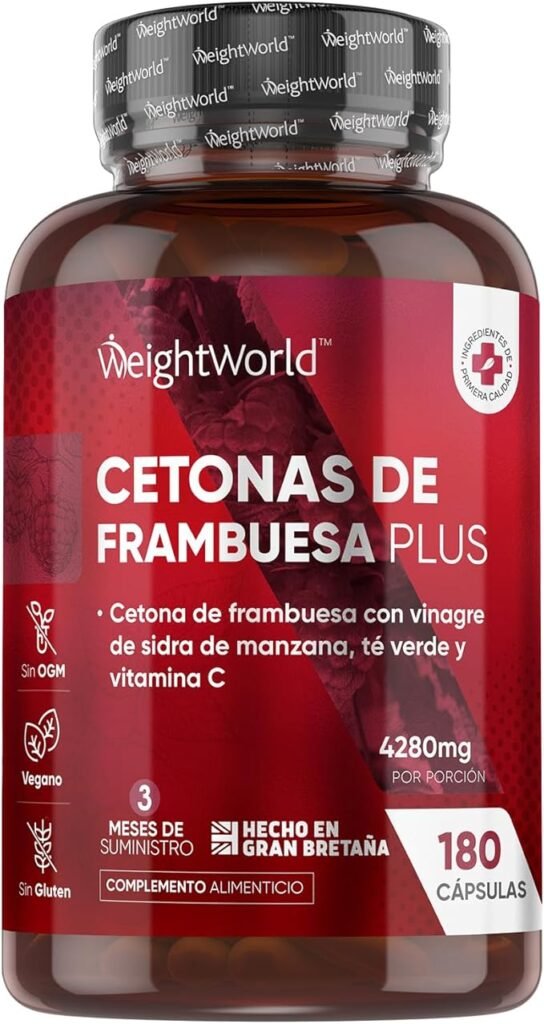 Cetonas de Frambuesa de WeightWorld? – Este suplemento contiene 180 cápsulas, cada porción con una potencia de 4280mg. Su fórmula está enriquecida con una combinación de ingredientes que incluyen té verde, vinagre de sidra de manzana en polvo, pectina de manzana, fucus vesiculosus, cafeína anhidra, acai en polvo y vitamina C.